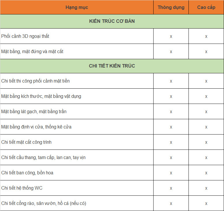 - Gói thiết kế trọn gói (Kiến trúc, kết cấu, điện nước)